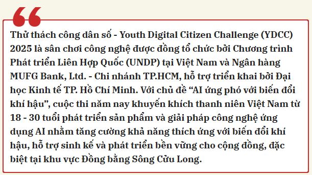 YDCC 2025 Hackathon là hoạt động tổng kết của một chuỗi chương trình được thiết kế bài bản trước đó. Các đội tham gia đã hoàn thành 4 buổi tập huấn trực tuyến về khám phá vấn đề, tư duy thiết kế, đạo đức trong sử dụng AI và phát triển giải pháp.