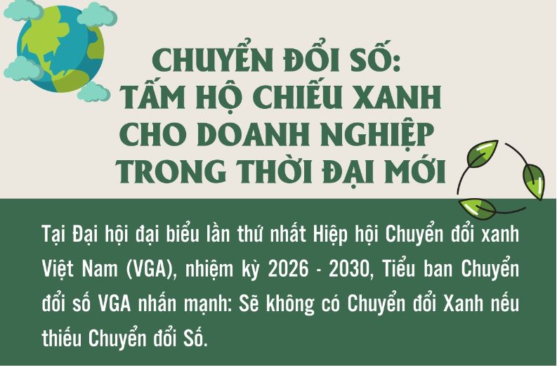 Tại Đại hội đại biểu lần thứ nhất, Hiệp hội Chuyển đổi xanh Việt Nam (VGA), nhiệm kỳ 2026 - 2030, diễn ra ngày 28/01/2026, Tiểu ban Chuyển đổi số VGA nhấn mạnh: "Sẽ không có Chuyển đổi Xanh nếu thiếu Chuyển đổi Số".