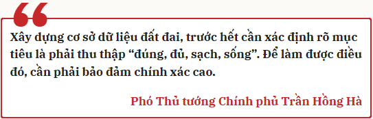 Phát biểu chỉ đạo hội nghị, Phó Thủ tướng Chính phủ Trần Hồng Hà nêu rõ nhiệm vụ, trách nhiệm của Bộ Tài nguyên và Môi trường, Bộ Công an và UBND các địa phương trong việc xây dựng cơ sở dữ liệu đất đai “đúng – đủ – sạch – sống – thống nhất – dùng chung”.