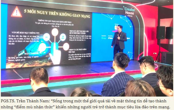 Tiếp cận vấn đề từ khía cạnh tâm lý - xã hội, làm rõ lý do vì sao con người dễ “sập bẫy” lừa đảo deepfake, nhất là trong những thời điểm cảm xúc chi phối mạnh như dịp cuối năm, PGS.TS. Trần Thành Nam, Phó Hiệu trưởng Trường Đại học Giáo dục, Đại học Quốc gia Hà Nội, chuyên gia Viện Tâm lý Việt - Pháp cho biết “sống trong một thế giới quá tải về mặt thông tin dễ tạo thành những “điểm mù nhận thức” khiến những người trẻ trở thành mục tiêu lừa đảo trên mạng.