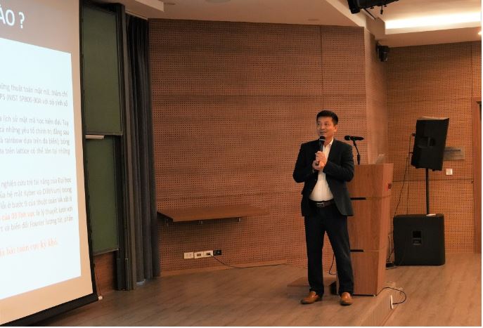 TS. Nguyễn Quốc Toàn, Viện trưởng Viện Khoa học - Công nghệ mật mã giới thiệu thuật toán chữ ký số hậu lượng tử VNPQSign của Ban Cơ yếu Chính phủ tại Hội thảo