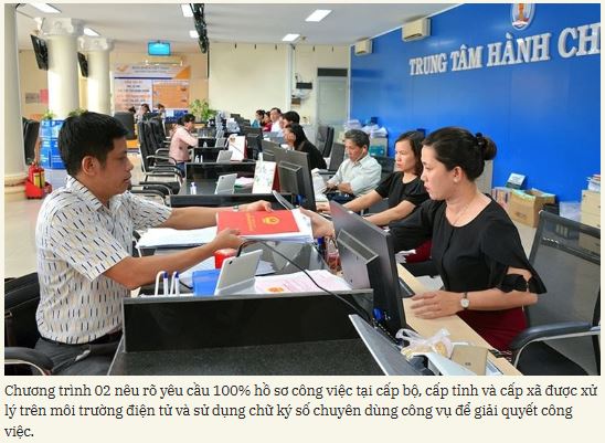 100% hồ sơ công việc tại cấp bộ, cấp tỉnh và cấp xã được xử lý trên môi trường điện tử (đối với hồ sơ thuộc phạm vi bí mật nhà nước thì thúc đẩy việc xử lý trên hệ thống, mạng phù hợp theo quy định pháp luật về bảo vệ bí mật nhà nước) và sử dụng chữ ký số chuyên dùng công vụ để giải quyết công việc.