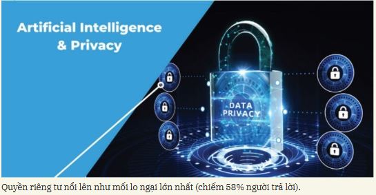 Cụ thể, khi xem xét các yếu tố ảnh hưởng đến việc chấp nhận và sử dụng AI, mối lo ngại cá nhân đóng vai trò quan trọng trong việc phản ánh tâm lý và thái độ của người dùng đối với công nghệ mới. Kết quả khảo sát cho thấy “quyền riêng tư” là mối lo ngại hàng đầu (58% người trả lời).